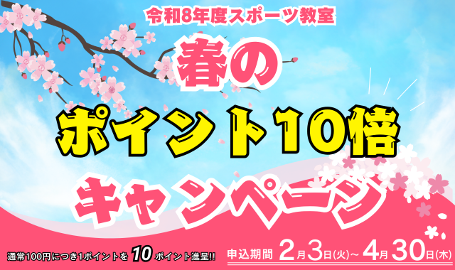 スポーツ教室『春のポイント10倍キャンペーン』を開催いたします。