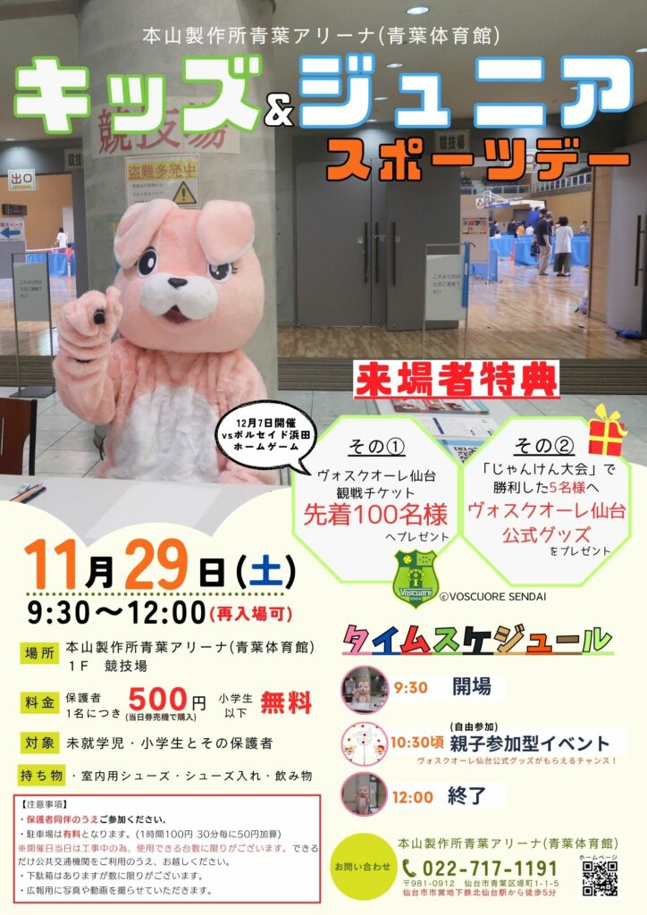 11/29(土)に、家族向けイベント「キッズ&ジュニアスポーツデー」を開催いたします(^^♪