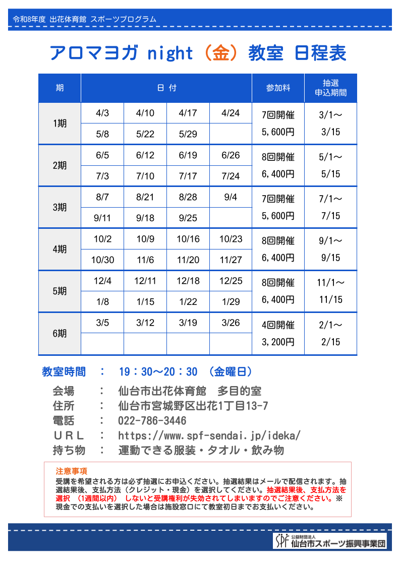 | 4期 | 10月 | 02 | 9 | 16 | 23 | 30 | 8回開催 6,400円 |