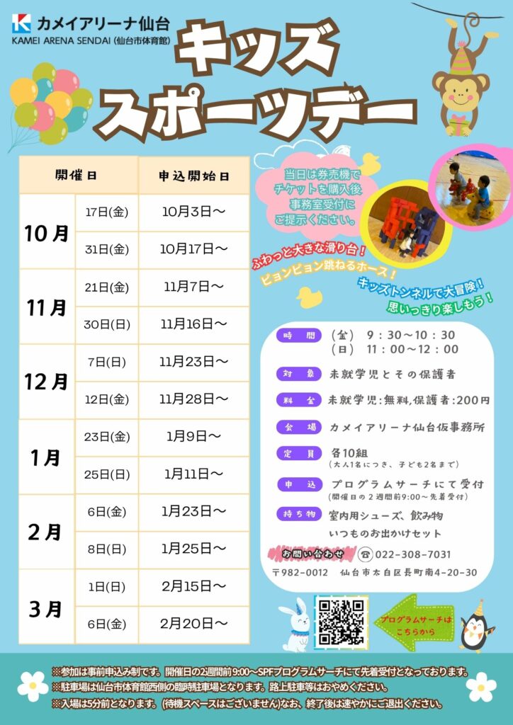 カメイアリーナ仙台は大規模改修工事につき全館休館中です。 期間中は事務所を移転して、一部プログラムのみご案内しております。 詳しくはHPよりご確認ください。
