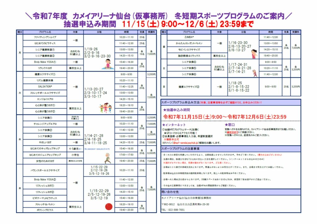 カメイアリーナ仙台は大規模改修工事につき全館休館中です。 期間中は事務所を移転して、一部プログラムのみご案内しております。 詳しくはHPよりご確認ください。
